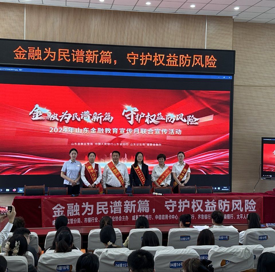 為了進(jìn)一步提升社會(huì)公眾尤其是師生的金融素養(yǎng)與風(fēng)險(xiǎn)防范能力,在威海金融監(jiān)管分局的引領(lǐng)下,太平人壽威海中支攜手工商銀行、威海農(nóng)商行等六家金融機(jī)構(gòu),積極開(kāi)展金融教育宣傳月活動(dòng),組建了“進(jìn)校園金融知識(shí)宣講團(tuán)”,以團(tuán)隊(duì)之力,共筑金融安全防線。