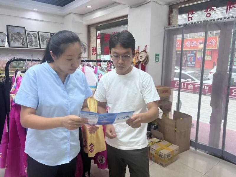 圖:太平人壽工作人員在中朝邊境“高麗街”向商戶宣傳金融知識