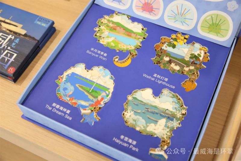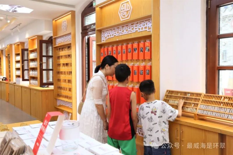 隨機(jī)走進(jìn)一家文創(chuàng)店,富有威海特色的桌面擺件、扇子、冰箱貼等琳瑯滿目,令人目不暇接,大家或?qū)⒕赖奈锲份p輕拿起,或俯下身子仔細(xì)觀賞。來自四川的王女士帶著孩子前來游玩,體驗(yàn)過老街的魅力后,她忍不住贊嘆:“將古建筑元素融入到現(xiàn)代都市中,感覺非常奇妙,街上有很多文創(chuàng)店,都非常有特色,非常適合帶回去留作紀(jì)念?!?/p>