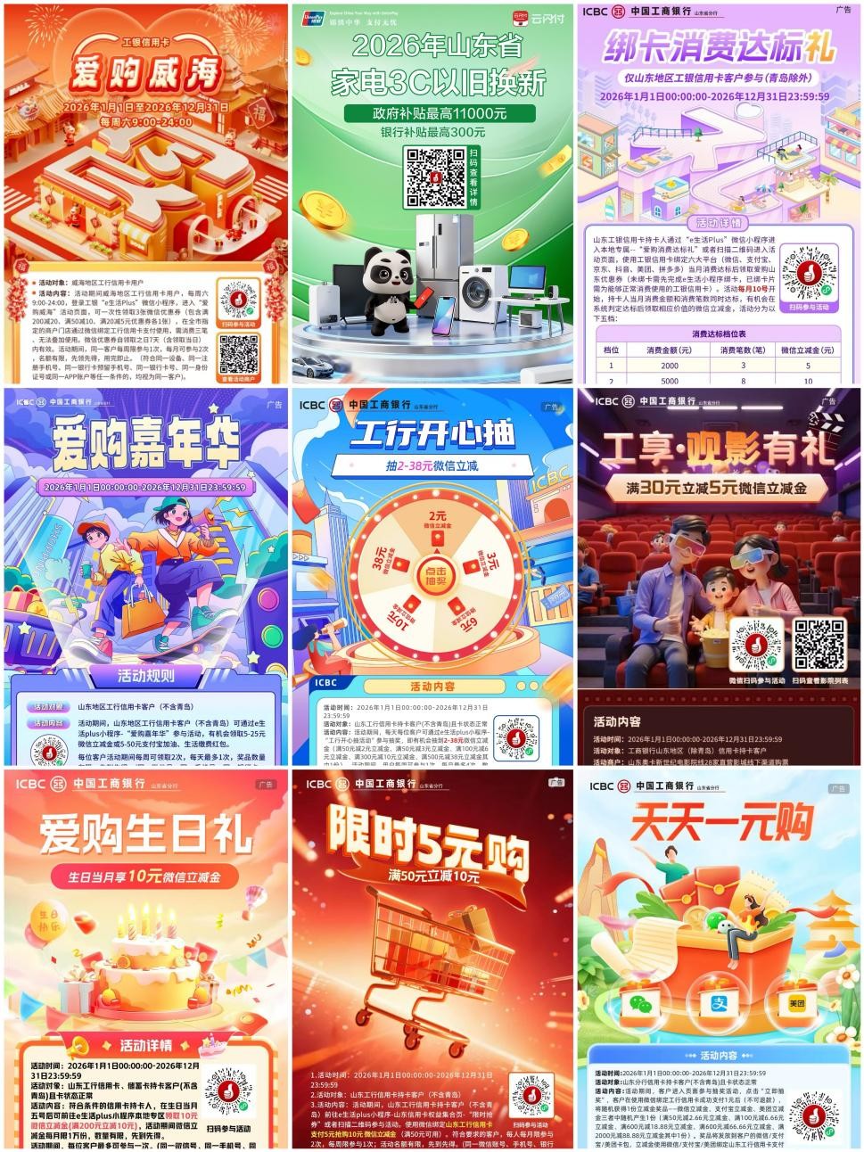 春潮涌動處,民生答卷新。近年來,站在激發(fā)消費(fèi)活力賽道上,中國工商銀行威海分行始終堅守“金融為民”初心,立足威海本地民生需求,將普惠金融服務(wù)與地方經(jīng)濟(jì)發(fā)展深度融合。精準(zhǔn)發(fā)力供暖繳費(fèi)、家電更新、商超餐飲等核心消費(fèi)場景,推出系列重磅優(yōu)惠活動,以“真金白銀”點(diǎn)燃市民消費(fèi)熱情,以大行擔(dān)當(dāng)書寫著服務(wù)威海高質(zhì)量發(fā)展的生動答卷。